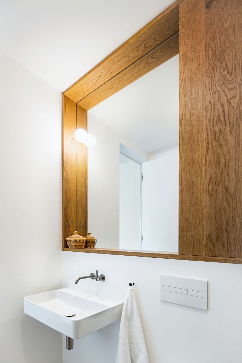 K spálni na prízemí prislúcha aj neveľká kúpeľňa spojená s toaletou.